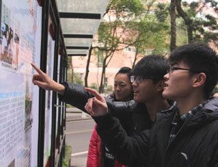 記者看到西南大學(xué)人流較大的傳媒大廣場擺放著印有實(shí)踐照片的展板,上面有團(tuán)隊(duì)成員在實(shí)踐中的照片、實(shí)踐感言以及活動花絮等,而展板前均聚集了不少學(xué)生。帶隊(duì)老師李海峰對記者表示,希望能在全國高校中形成一種樂于實(shí)踐的氛圍,倡導(dǎo)大學(xué)生積極開展社會實(shí)踐。