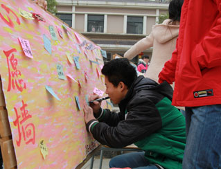 12月15日,南昌大學(xué)護(hù)理學(xué)院在醫(yī)學(xué)院新世紀(jì)廣場舉行了2013大學(xué)生社會實(shí)踐評選成果校園巡展。此次巡展共展出17塊展板,其中包括6塊獲獎優(yōu)秀團(tuán)隊(duì)介紹板、6塊“愛佑童心”志愿者隊(duì)“愛佑之行”展板、3塊“愛·一起來”宣傳海報(bào)板、一塊留言板和一塊心愿墻展板。展板形象展現(xiàn)了“愛佑童心”三下鄉(xiāng)團(tuán)隊(duì)實(shí)踐全過程,從前期的緊張準(zhǔn)備、中期實(shí)踐到后期的精心總結(jié),將“愛佑童心”六支實(shí)踐隊(duì)伍的活動詳細(xì)地展現(xiàn)給大家。最后,參觀者也在心愿墻為先心患兒寫下最真摯的祝福,“愛佑童心,加油”“祝愿先心患兒早日康復(fù)”“藍(lán)天白云之下,我們與愛佑同行”等等祝福心愿擠滿心愿墻。