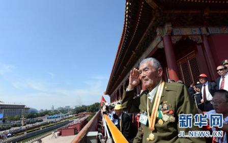 新華網(wǎng)長(zhǎng)春10月17日電(記者 田甜)9月3日,紀(jì)念中國(guó)人民抗日戰(zhàn)爭(zhēng)暨世界反法西斯戰(zhàn)爭(zhēng)勝利70周年大會(huì)在北京舉行。在那場(chǎng)盛大的閱兵式上,一位抗戰(zhàn)老兵在天安門城樓上向受閱部隊(duì)全程起立敬軍禮的一幕,戳中了很多人的淚點(diǎn),無(wú)數(shù)人為之動(dòng)容。近日,記者隨“尋找歷史記憶 緬懷抗戰(zhàn)英烈”采訪團(tuán)來(lái)到這位“敬禮老兵“史保東老人的家中,探訪昔日戰(zhàn)場(chǎng)上的這位鐵血戰(zhàn)士,回憶那段激情燃燒的抗戰(zhàn)歲月。